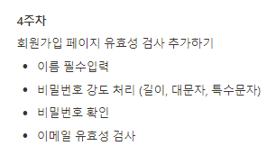 그 후 추가 과제는 4주차내용(유효성검사)이다.