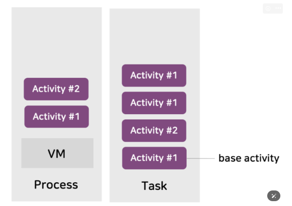 어플리케이션을 실행하게되면 프로세스와 태스크가 각각 실행된다.