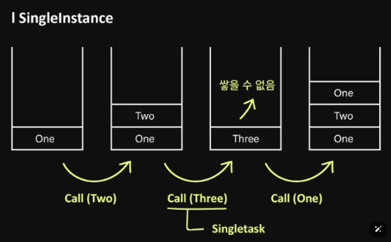 한 태스크의 하나의 singleInstance 액티비티만 존재 가능