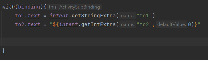 다음과 같이 작성했는데, to2는 int형이기때문에 getIntExtra로 받고 defaultValue를 설정했다.