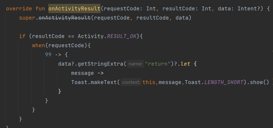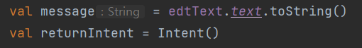 또한 SubActivity.kt파일에서는 데이터를 받고 다시 그 데이터를 넘겨주는