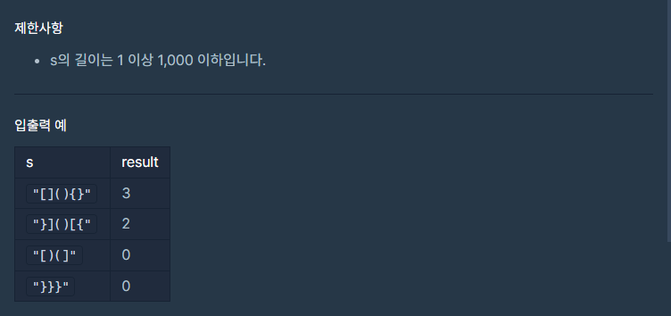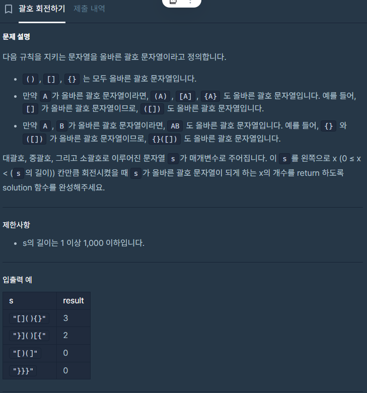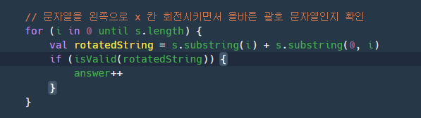 문자열을 왼쪽으로 x칸 회전시키면서 올바른 괄호 문자열인지 확인한다.