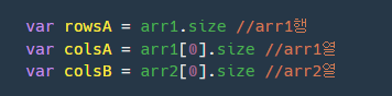 그래서 간단히 arr1의 행과 열 그리고 arr2의 열을 변수에 담기로 결정했다.