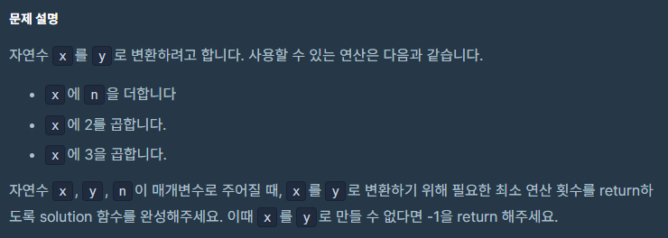 문제를 보자마자 해당문제는 x에서 y에 도달하게끔 만드는 문제이다.